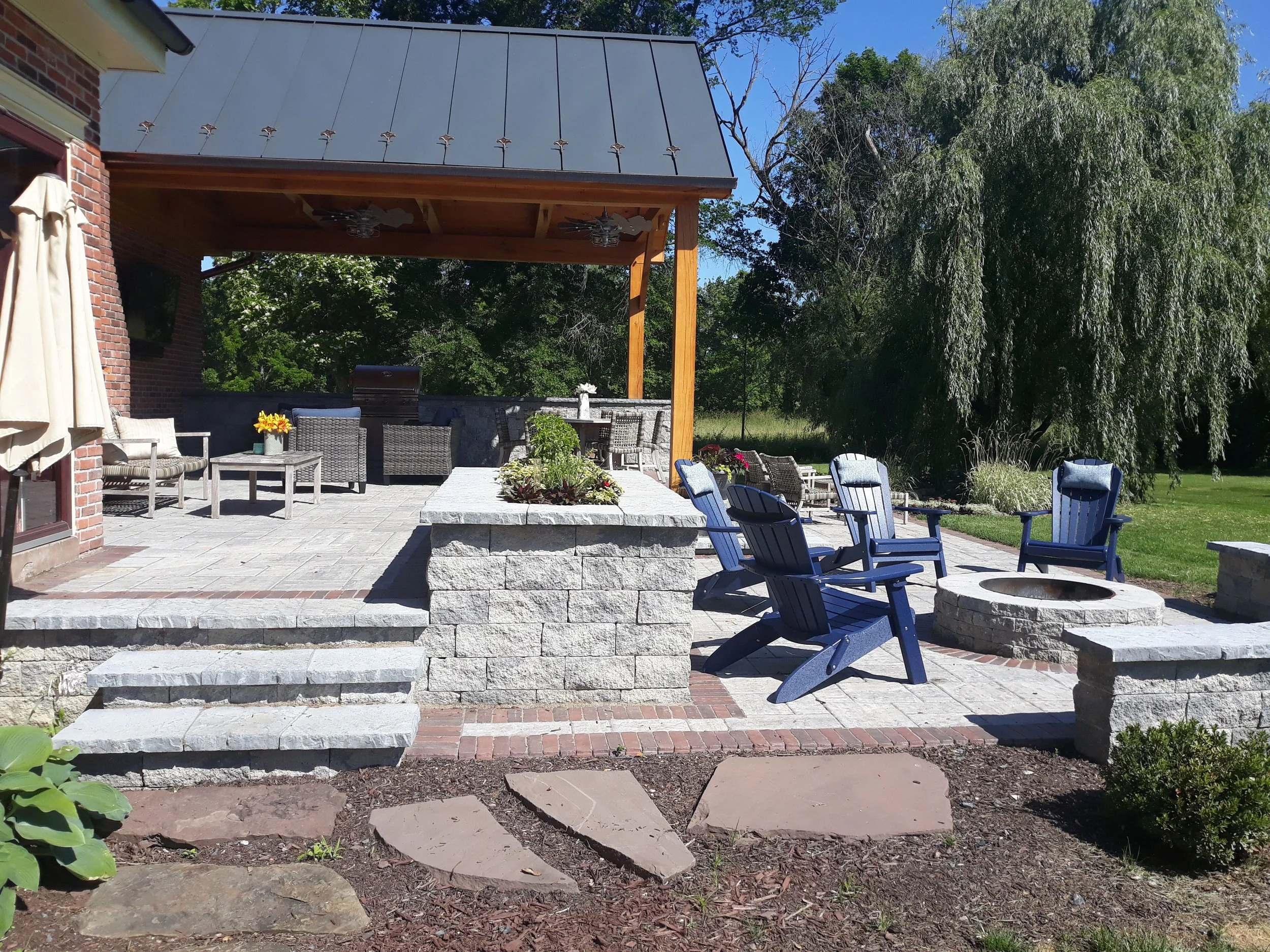 Early on, it can make sense to consider how the look of your retaining wall will correspond with your paver patio. The wall could help to define your overall outdoor living space where the patio is the main attraction, and it may be possible to use materials that are very similar in terms of color and/or textures. The retaining wall can potentially provide some privacy to the patio and hellp to establish your ideal spot for relaxing and enjoying the outdoors.